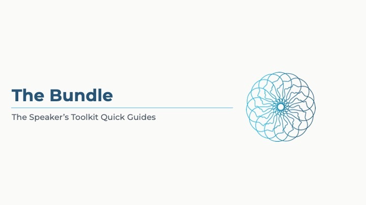 This bundle saves you money, but more importantly, it gives you a complete starter toolkit you can revisit before every talk.